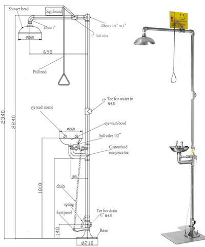 Göz yıkama ile yüz acil duş-me-1107 istasyon 304